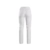 Dámske pracovné biele nohavice do pása s elastickým, rebrovaným pásom. Pracovný odev s väčšinovým podielom umelých vláken.