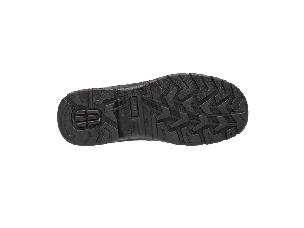 - vrchný materiál: čierna hovädzia useň Barton print s hydrofóbnou úpravou, hrúbka 1,6 - 1,8 mm, jazyk zo syntetického PU (polyuretán) materiálu, textilné reflexné pútko v päte pre ľahšie obúvanie