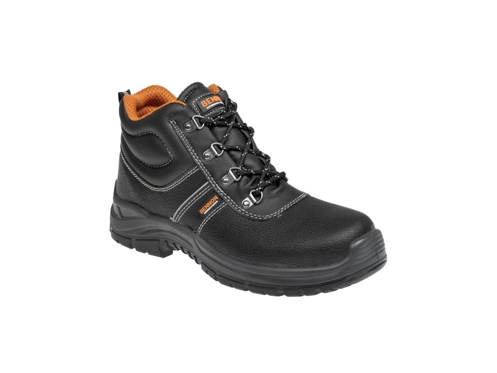 Členková pracovná obuv BNN BASIC S3 High s oceľovou bezpečnostnou špicou a oceľovou planžetou proti prepichnutiu podrážky, obuv z hydrofóbnej hovädzej kože od firmy Bennon