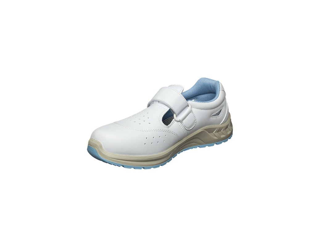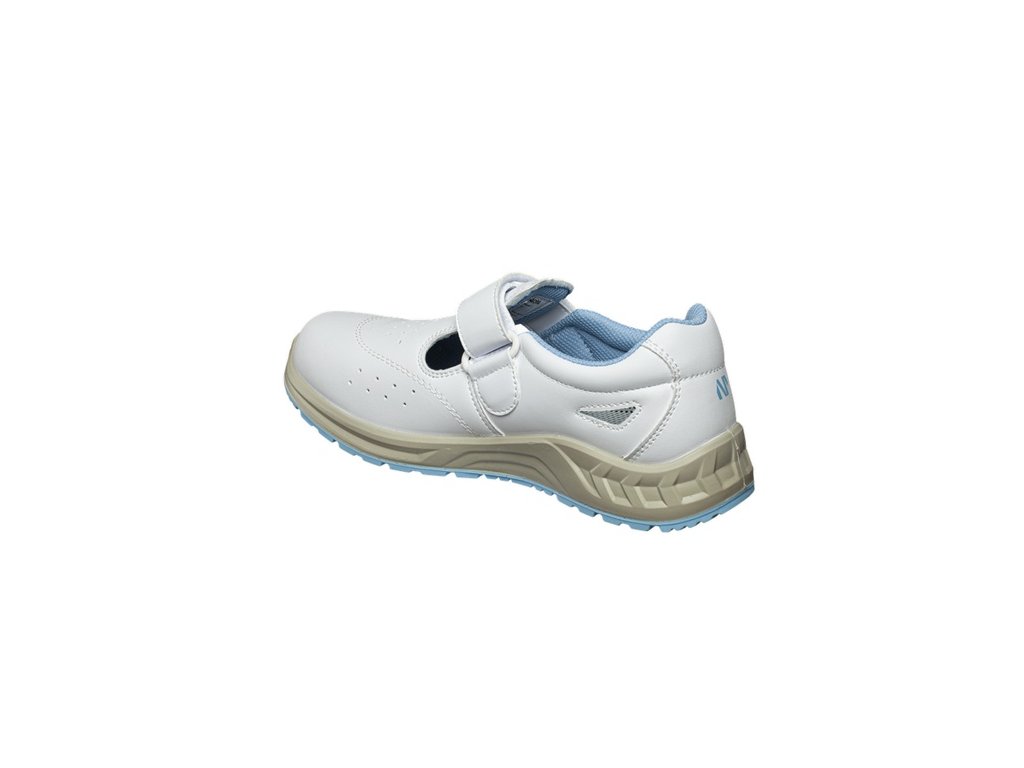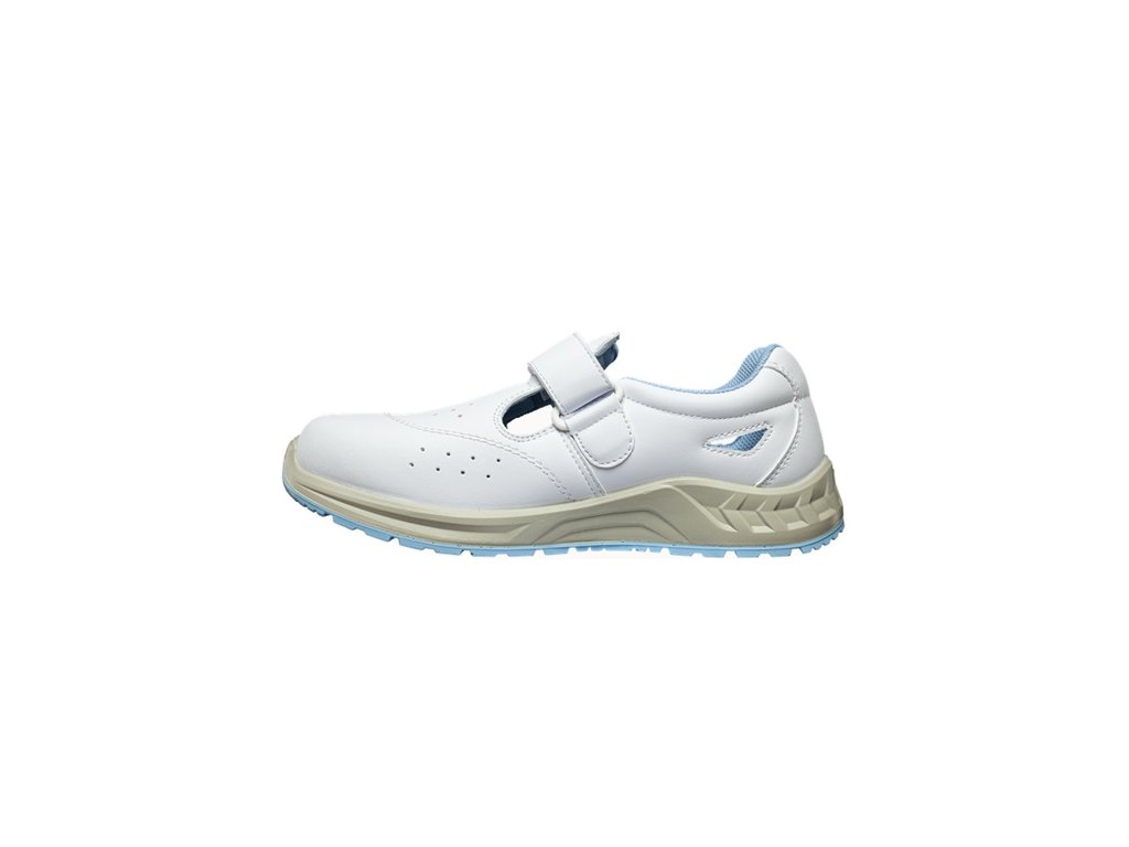 Vzdušný, dobre umývateľný bezpečnostný pracovný sandál s oceľovou bezpečnostnou špičkou a ESD vlastnosťami, vhodný v oblasti zdravotníctva, gastronómie, potravinárstva, školstva, upratovacie služby a do EPA priestorov.
